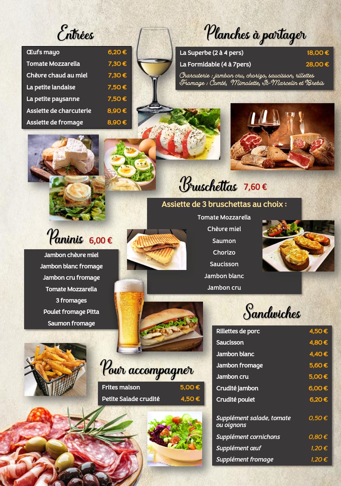 Le cuisto se fera un plaisir de vous concocter de bons plats traditionnels à base de produits frais, frites maison, pains et buns du boulanger.
