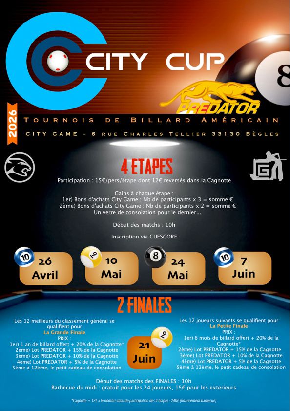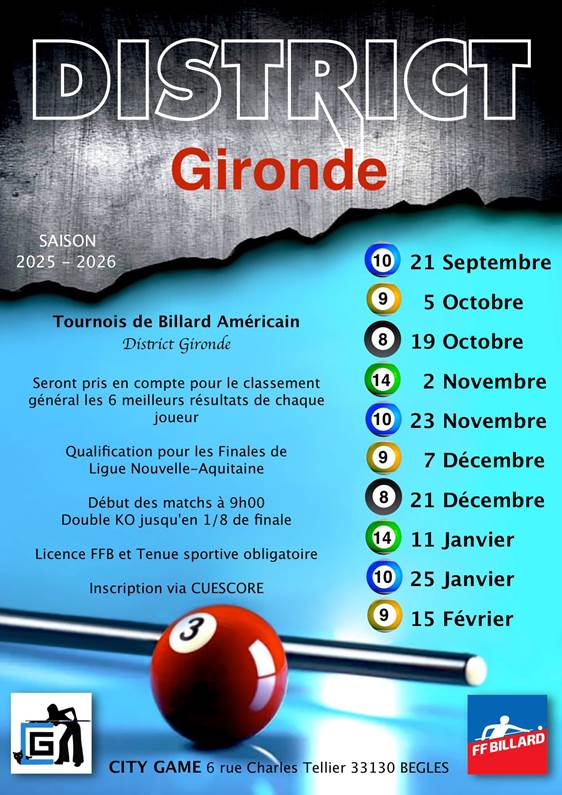 Affilié à la FFB le City Billard Club, c’est un véritable point de rencontre pour les passionnés de billard et les amateurs de convivialité. Que vous soyez un joueur chevronné ou un novice désireux d'apprendre, notre club est ouvert à tous !